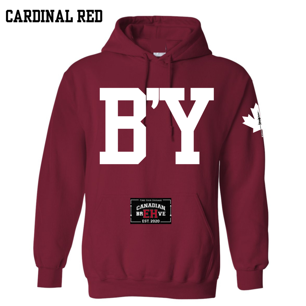 B’Y is heat pressed across the chest.