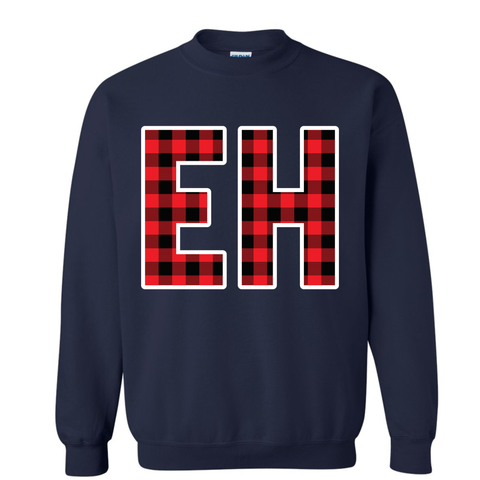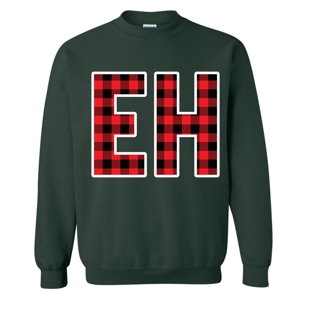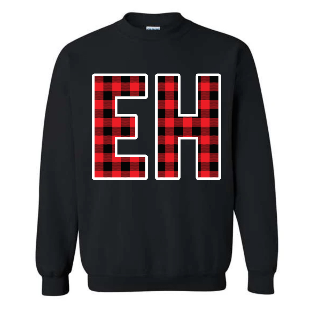 EH is heat transferred on to the front of the hoodie. CANADIAN BREHVE logo to the back of the neck.