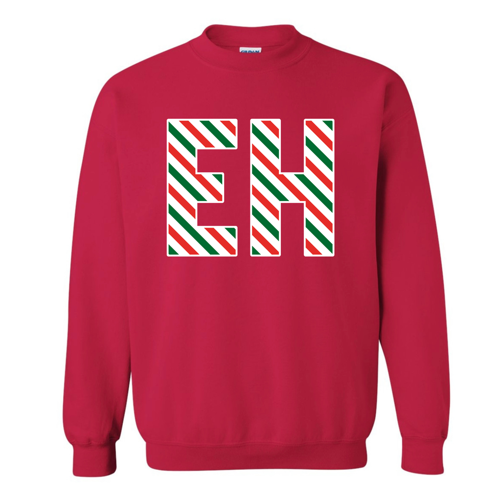 EH is heat transferred on to the front of the hoodie. CANADIAN BREHVE logo to the back of the neck.