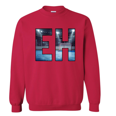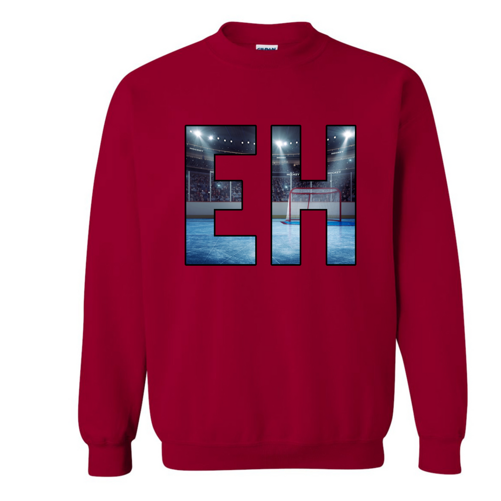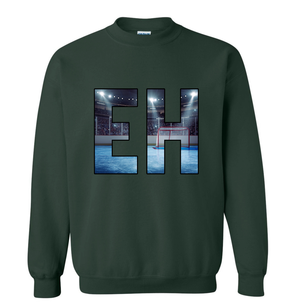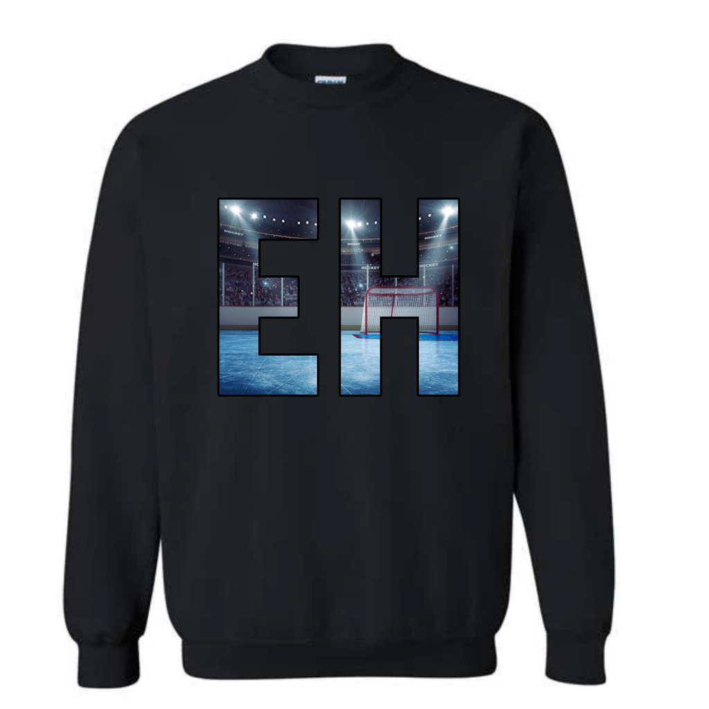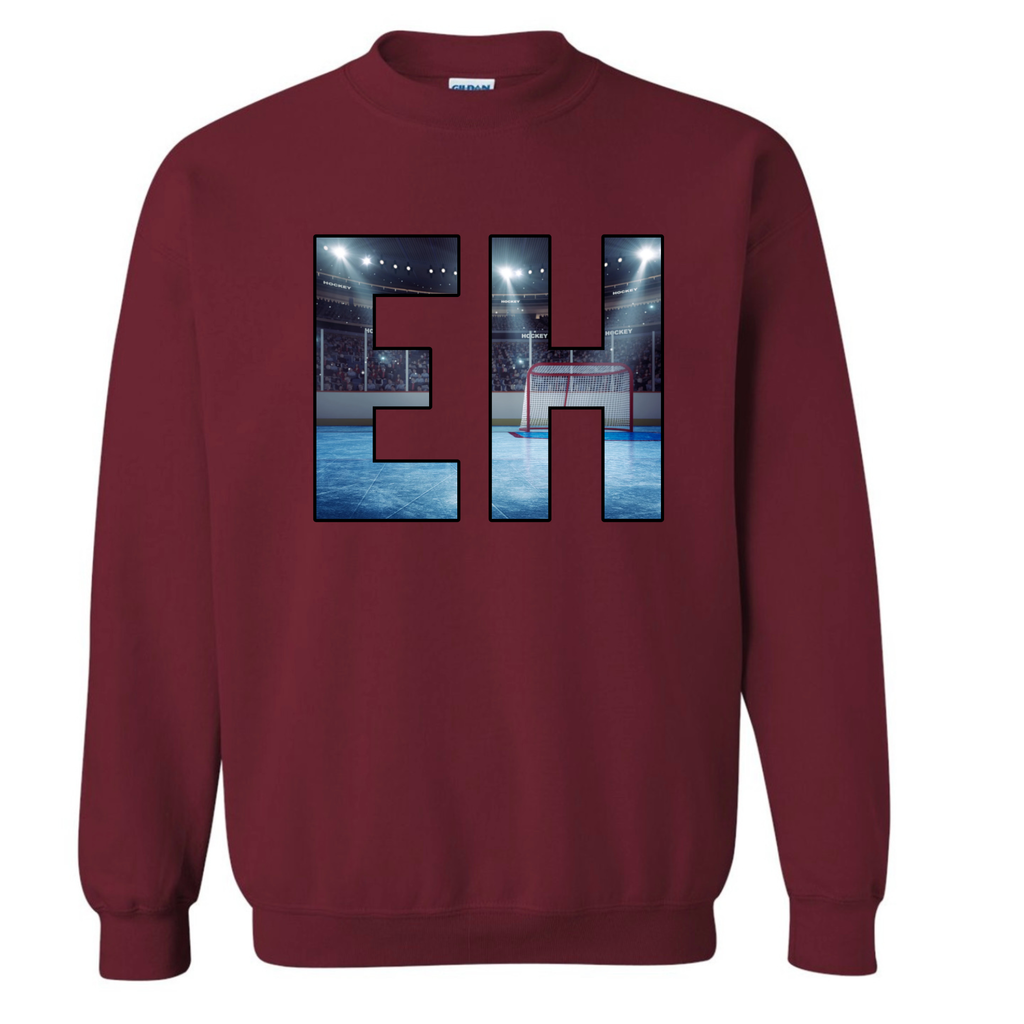 EH is heat transferred on to the front of the hoodie. CANADIAN BREHVE logo to the back of the neck.