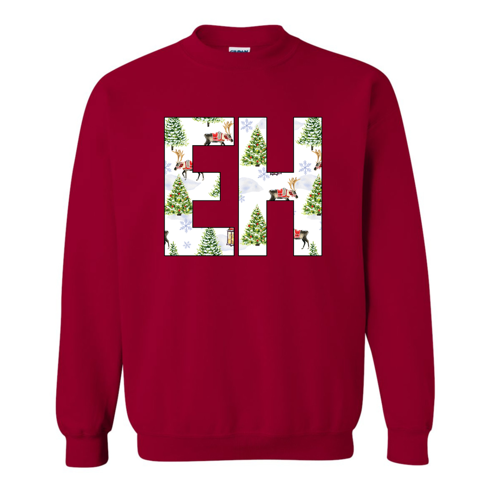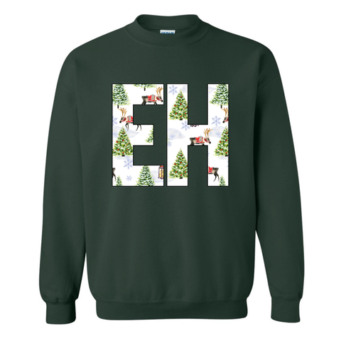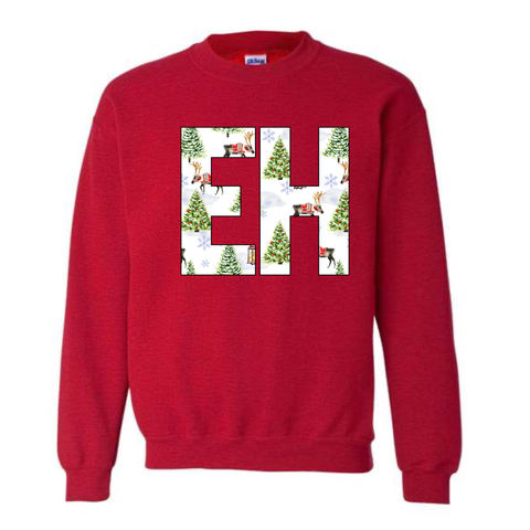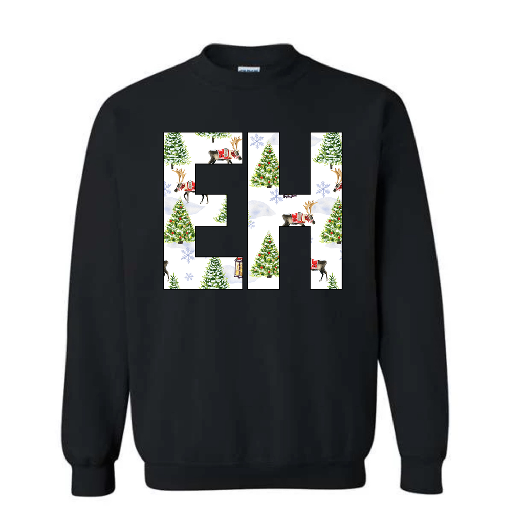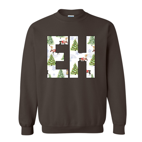EH is heat transferred on to the front of the hoodie. CANADIAN BREHVE logo to the back of the neck.