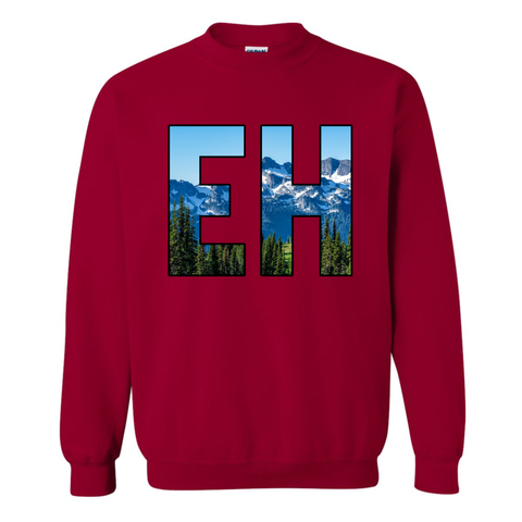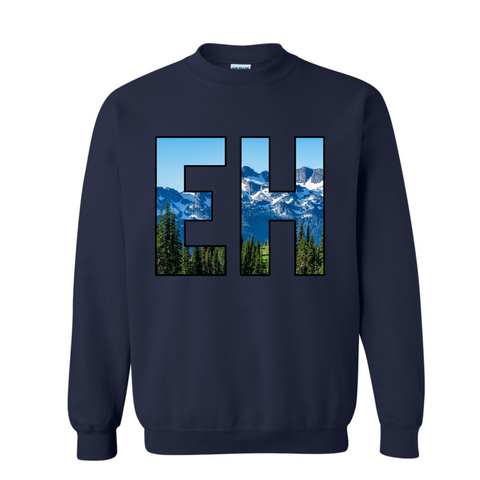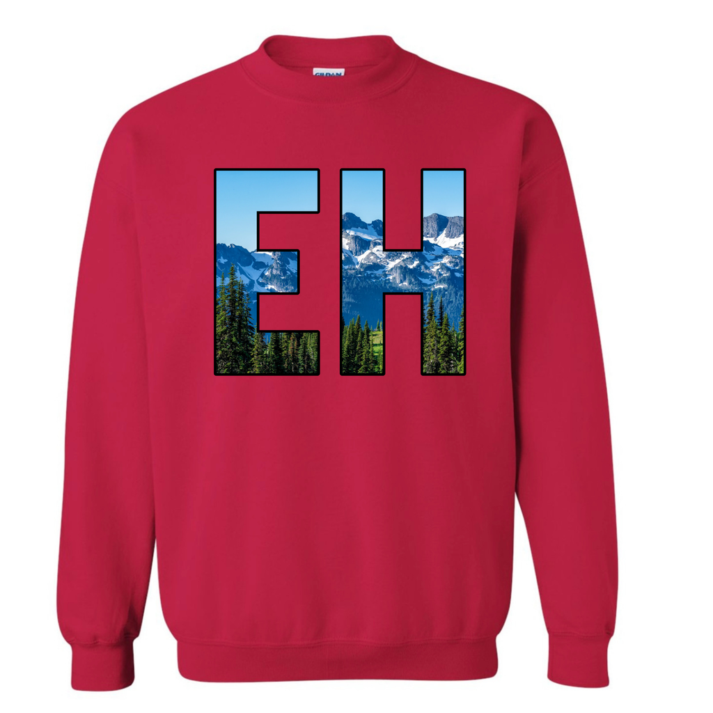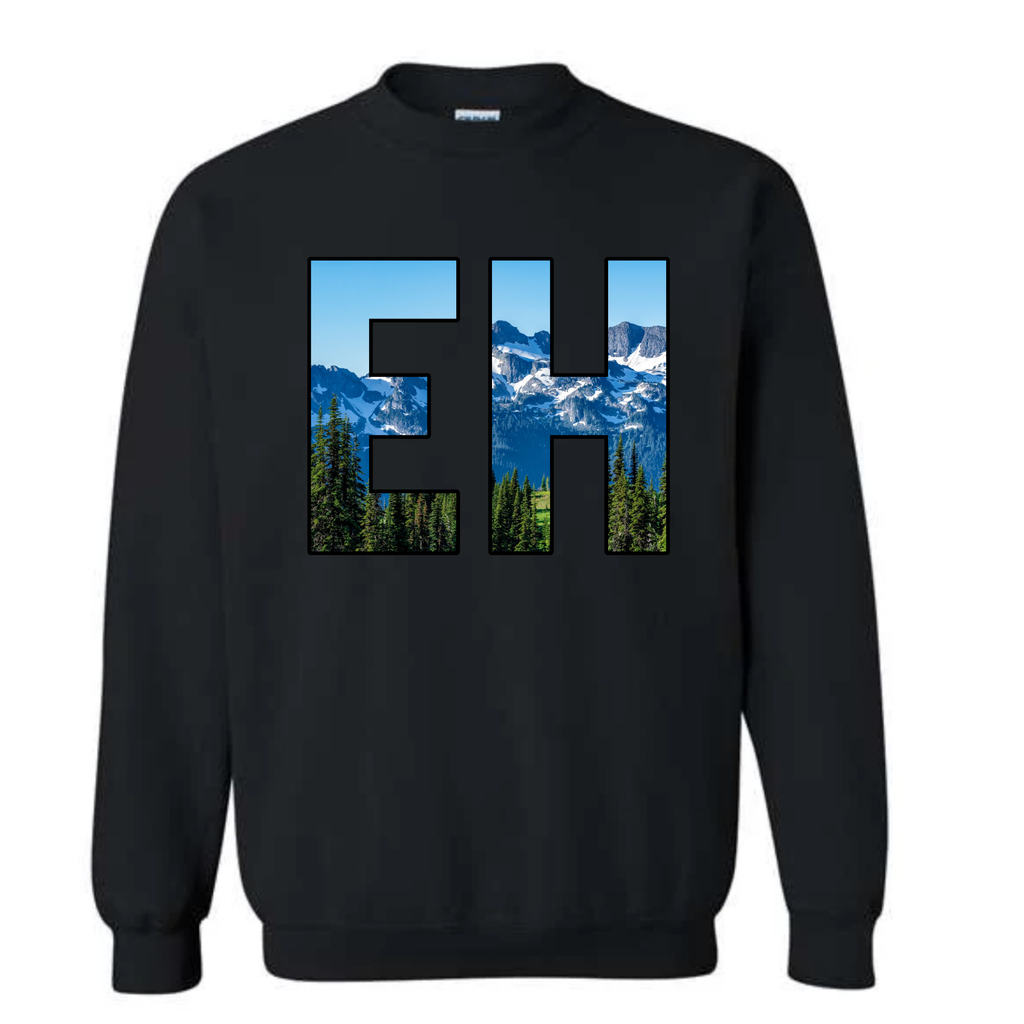 EH is heat transferred on to the front of the hoodie. CANADIAN BREHVE logo to the back of the neck.