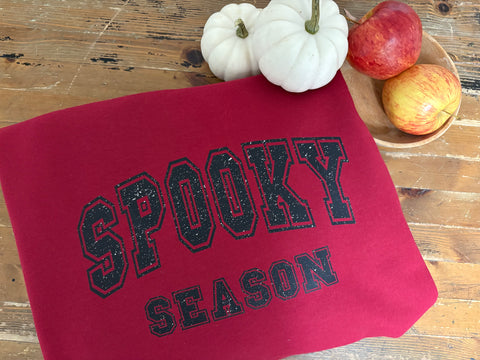 The Halloween print of your choice is heat pressed onto a crew neck hoodie.