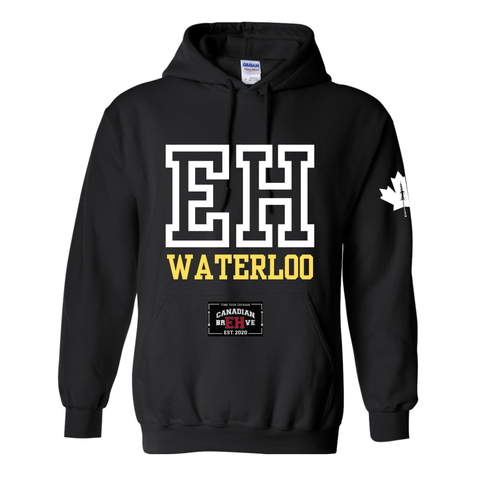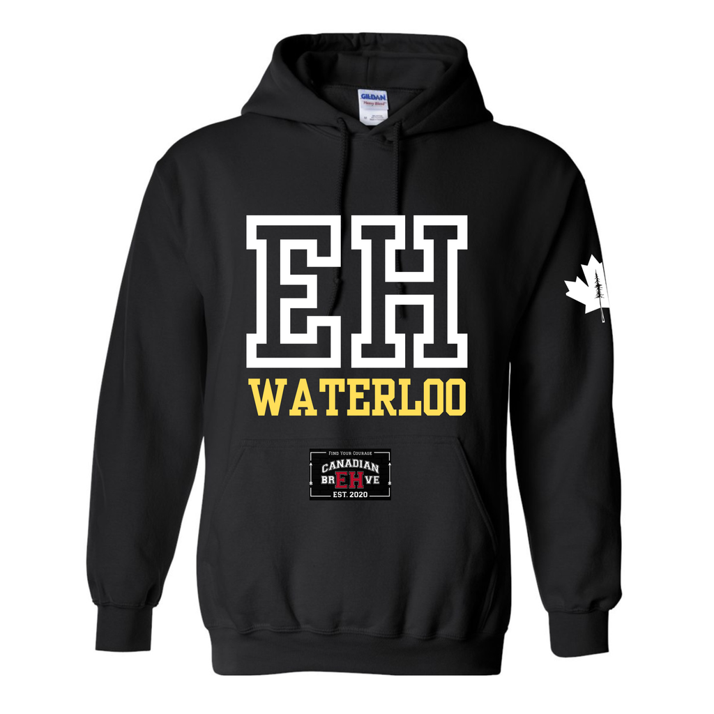 EH Waterloo Team Hoodie is a cozy essential for those who carry the team spirit! EH WATERLOO is heat pressed to the front of the hoodie and your name and number to the back. You choose whether you would like the CANADIAN BREHVE logo on the hood or the Ghost. The details of your name, number and hood decal can be left in the SPECIAL INSTRUCTIONS box at checkout.