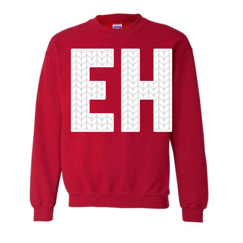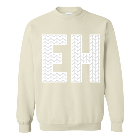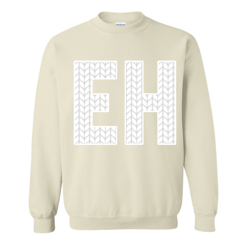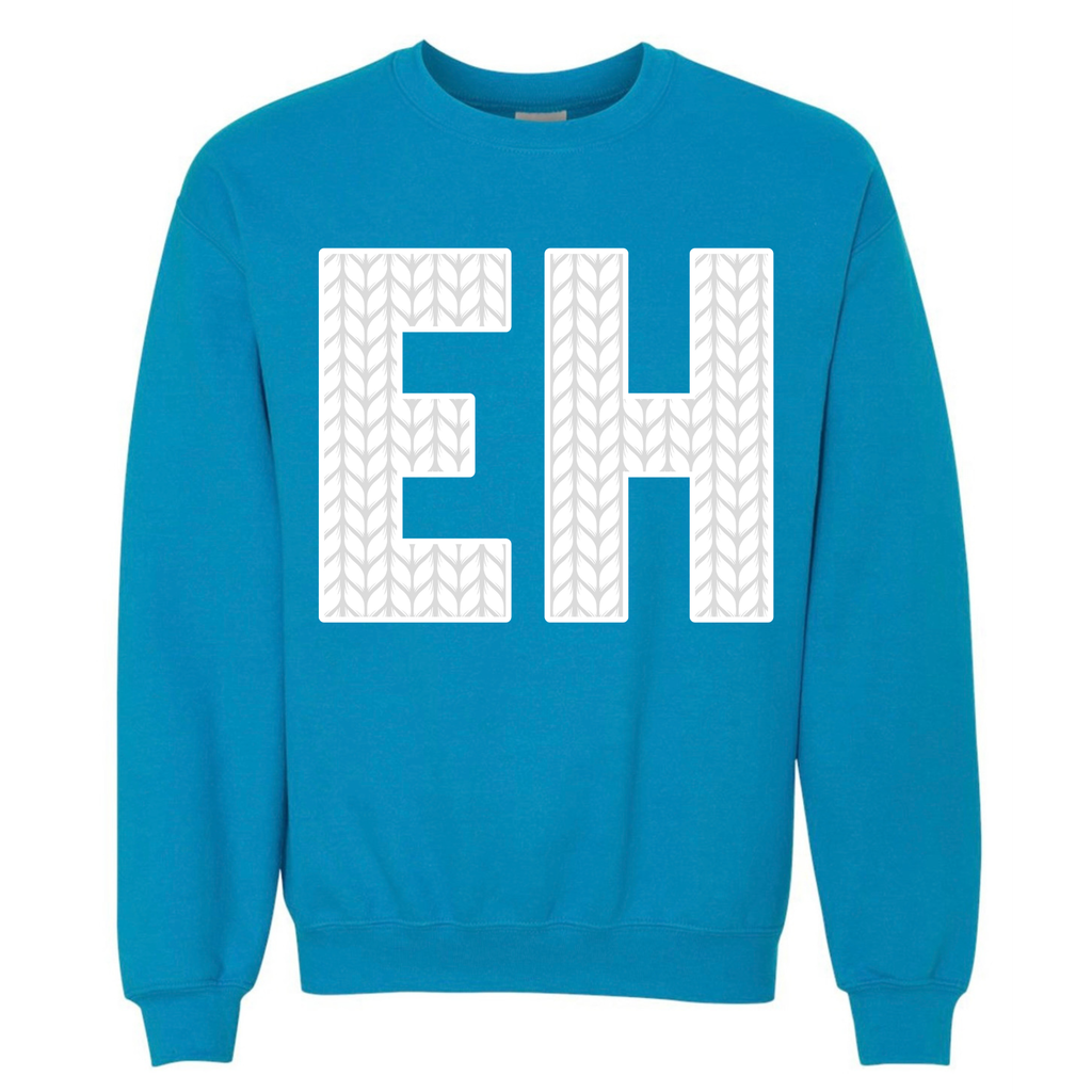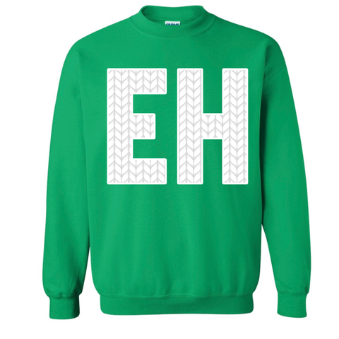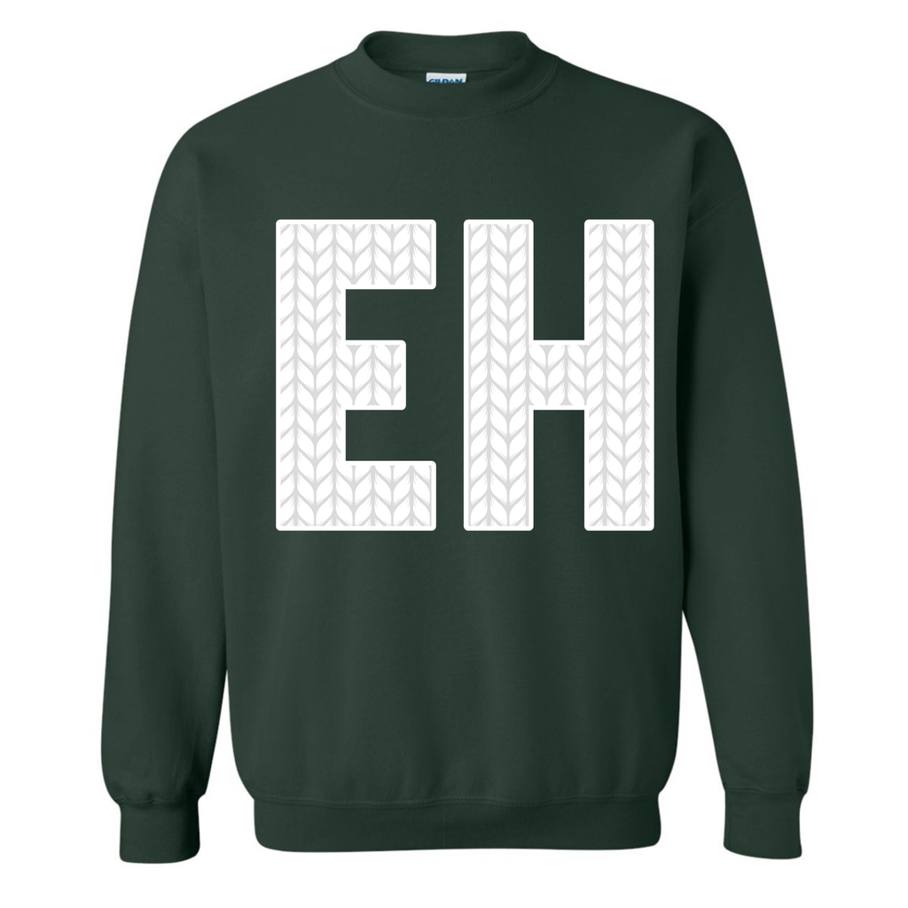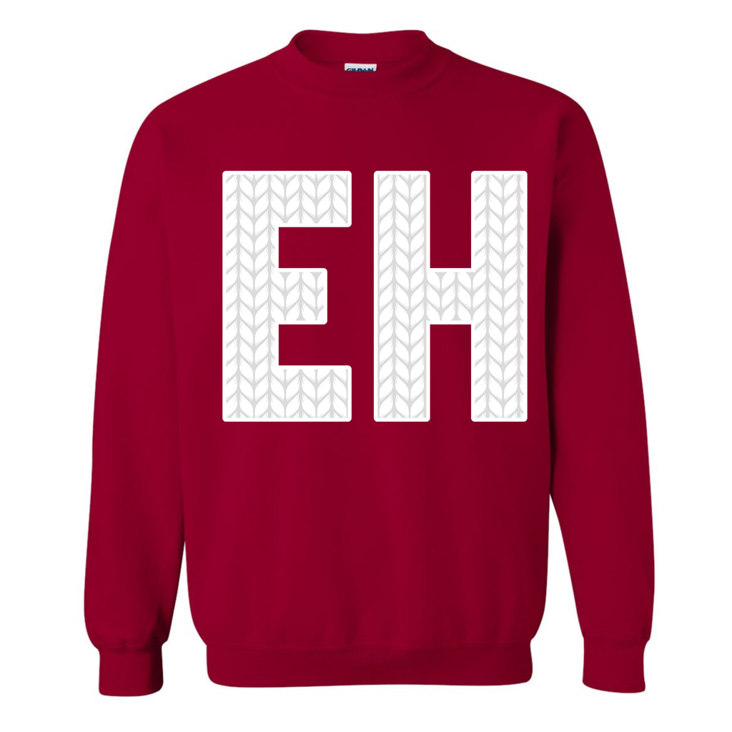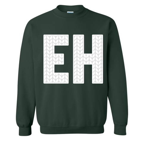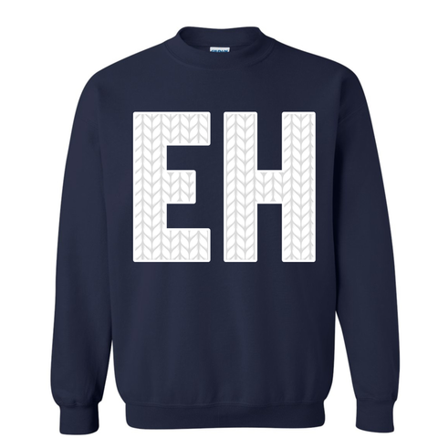 EH is heat transferred on to the front of the hoodie. CANADIAN BREHVE logo to the back of the neck.